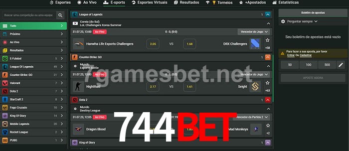 O 744Bet oferece uma grande seleção de opções de apostas em e-sports com probabilidades competitivas